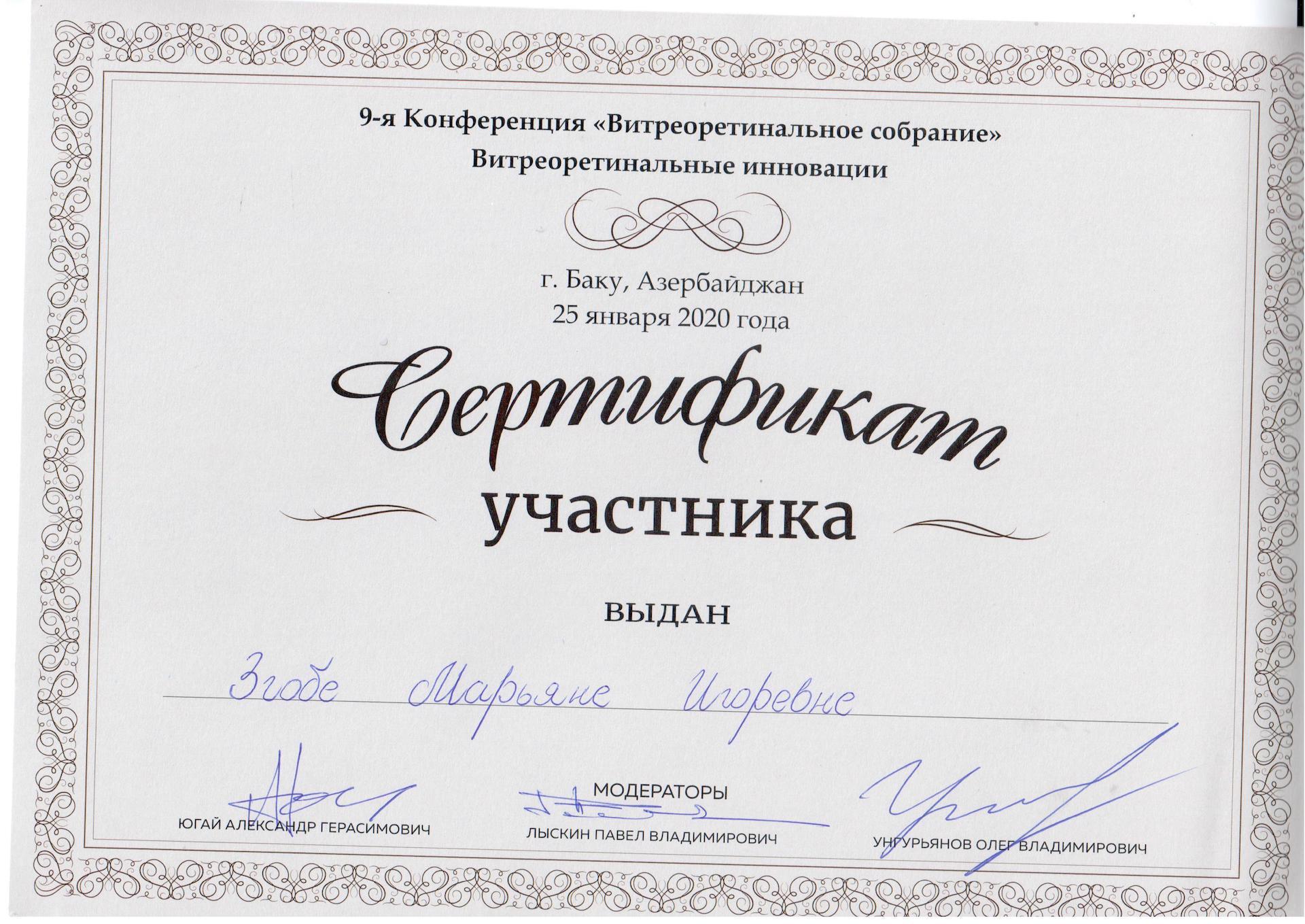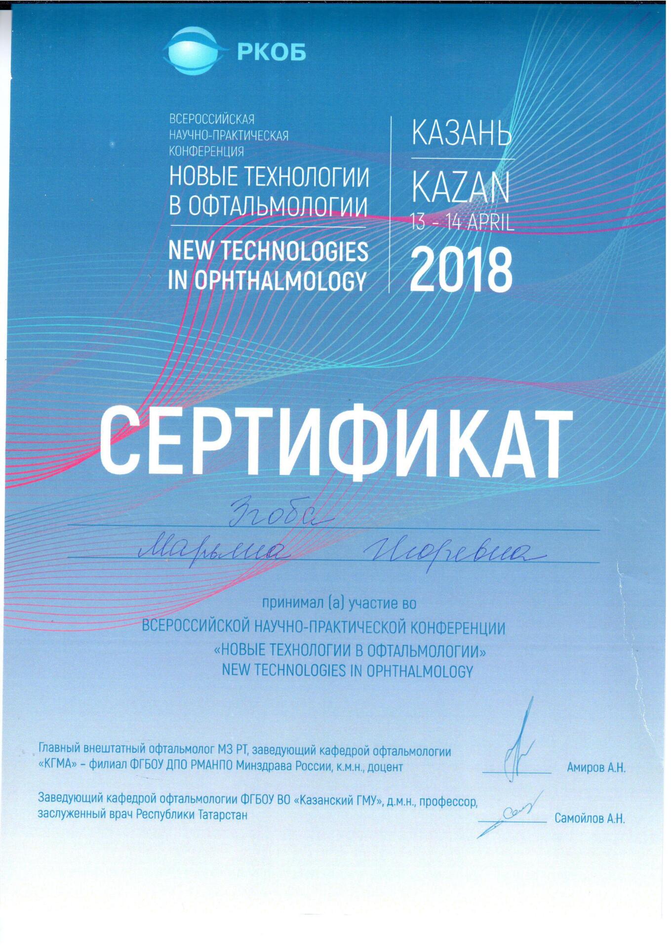2019 – повышение квалификации в Академии постдипломного образования ФГБУ ФНКЦ ФМБА России «офтальмология»